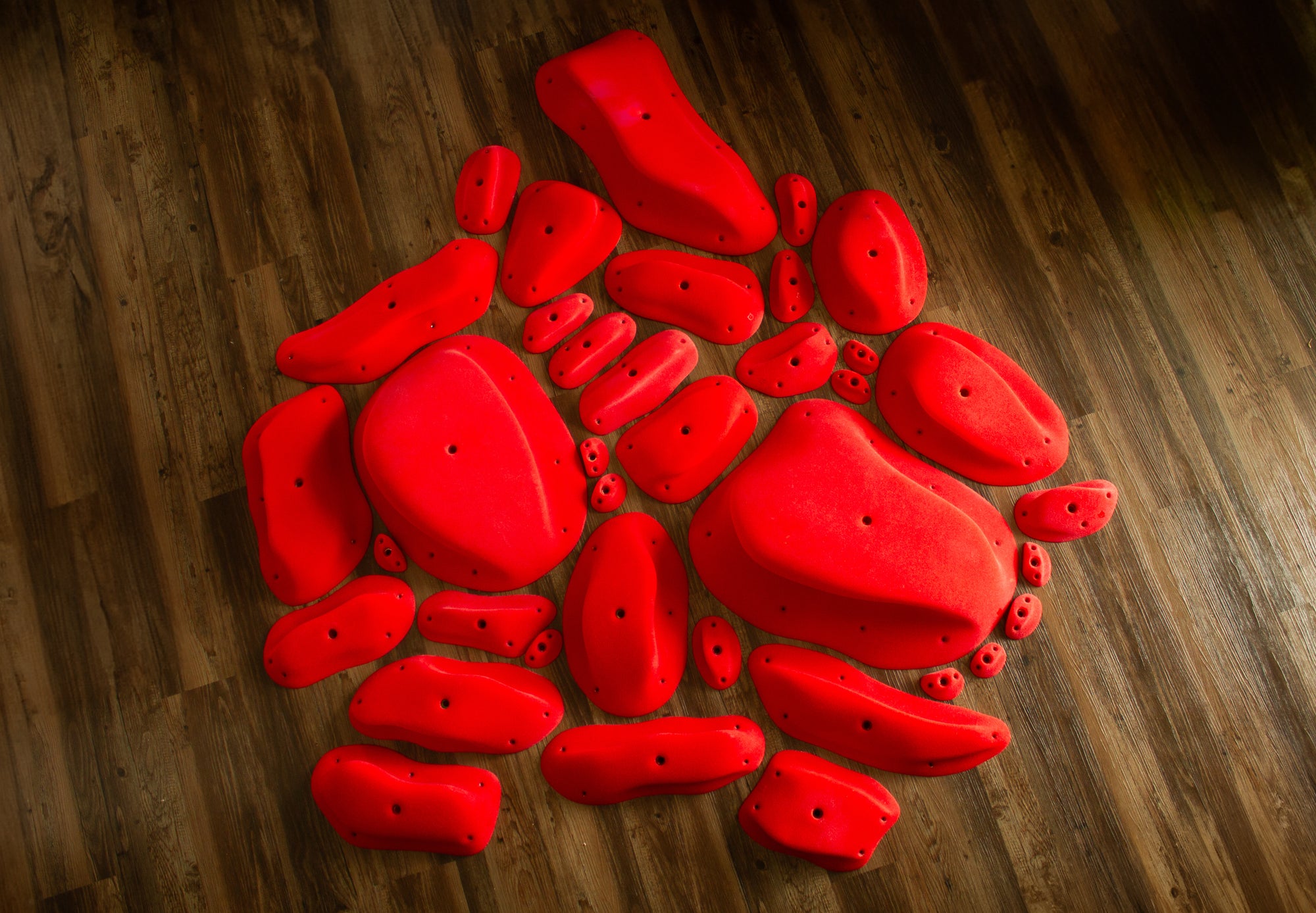 This set of six bolt-on and screw-on holds offers comfortable, ergonomic grips tailored for various climbing angles. Their design ensures secure holds, complemented by thumb catches and varying degrees of incut sides for added challenge. Versatile and adaptable to different skill levels.